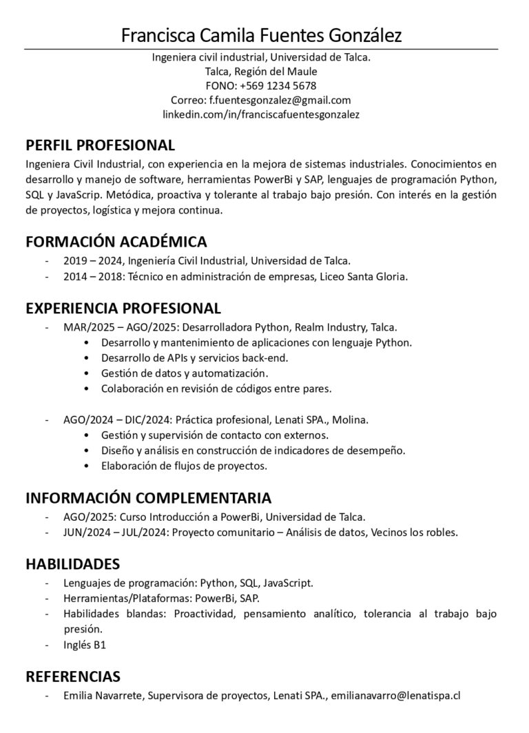 MAR/2025 – AGO/2025: Desarrolladora Python, Realm Industry, Talca.