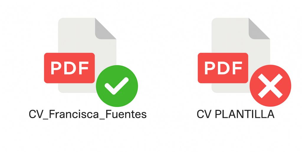 ¡Pero ojo! Tener mucho cuidado, pues bajo ninguna circunstancia podemos enviar nuestra postulación con un archivo llamado “Plantilla Curriculum Vitae blanco y negro (3)” o similares.